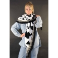 De Cowie wintersjaal in zwart-wit koeienprint is een trendy driehoekige sjaal met een warme, winterse uitstraling. Deze sjaal is voorzien van extra details zoals franjes en subtiel gouddraad, wat een vleugje elegantie toevoegt aan je winterse outfit.