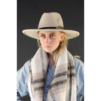 Een prachtige najaarshoed, verkrijgbaar in de warme tinten camel en beige, heeft een tijdloos ontwerp met een brede, soepel vallende rand. De hoed is gemaakt van polyester. Het kenmerkt zich door subtiel detail, een gouden veer, wat een vleugje verfijning toevoegt aan elke herfstoutfit. Deze hoed combineert stijl en functionaliteit perfect en is een must-have accessoire voor het najaar.