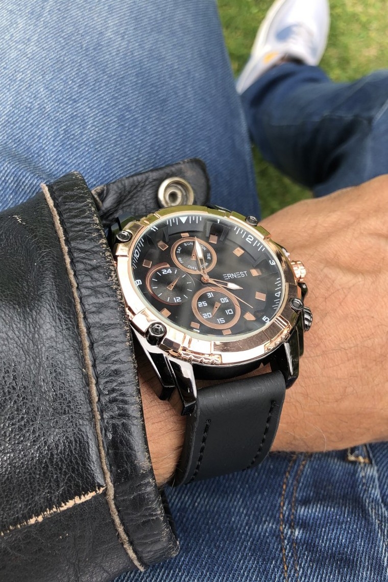 Ernest herenhorloge, stevige band met ruwe details voor een stoer uiterlijk!